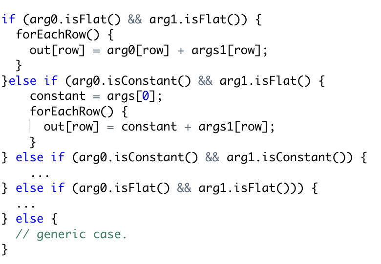 we couldn’t think of an efficient way to do that in a vectorized engine. Velox doesn’t use code